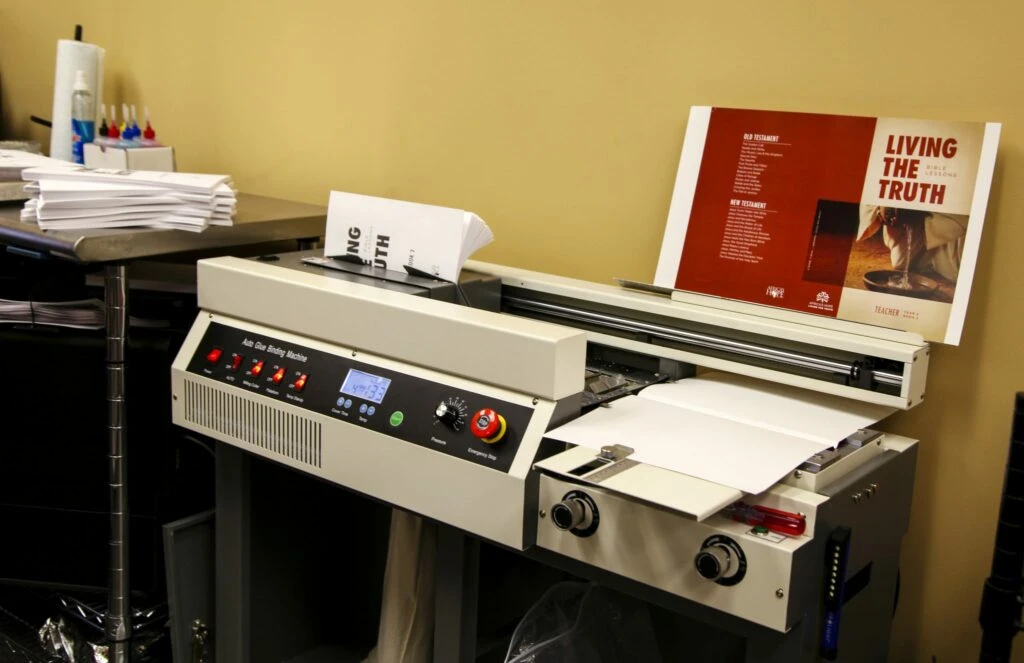 The POD system, developed by Publish4All, is ruggedly designed with the African environment in mind. POD systems are “bookshops in a box” that inexpensively produce quality, perfect-bound books in the short run. With a POD system, we will be able to produce all of our textbooks and materials at a reasonable cost in-country.